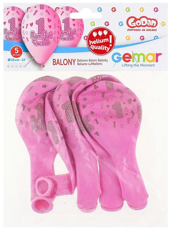 Balony Mam Już Roczek różowe 33 cm 5 sztuk Premium, GoDan