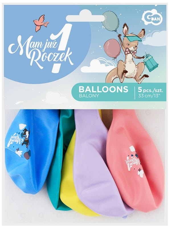 Balony Mam już 1 roczek kangurek 33 cm 5 sztuk Premium Hel, Godan