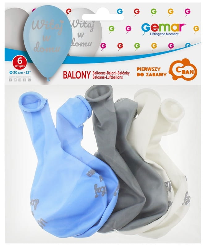 Balony Witaj w domu niebieskie 30 cm 6 sztuk Premium Hel, Godan