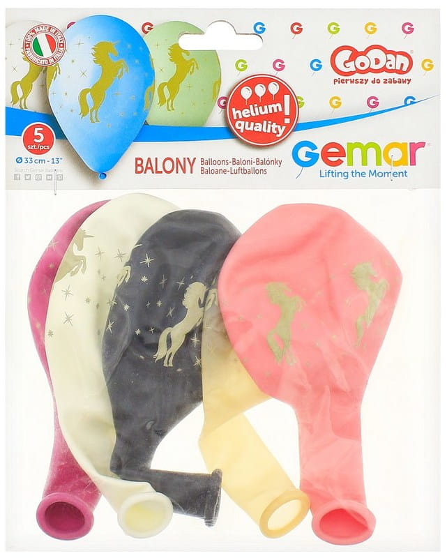 Balony Złoty Jednorożec 5 sztuk 33 cm Premium Hel, GoDan
