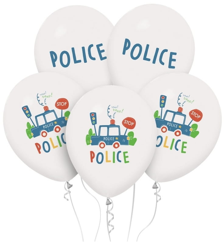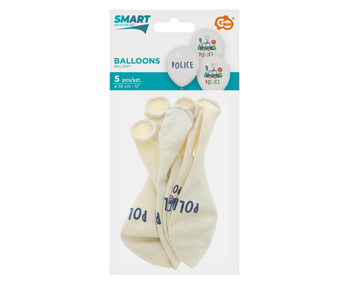 Balony białe Policja 30 cm 5 sztuk, GoDan