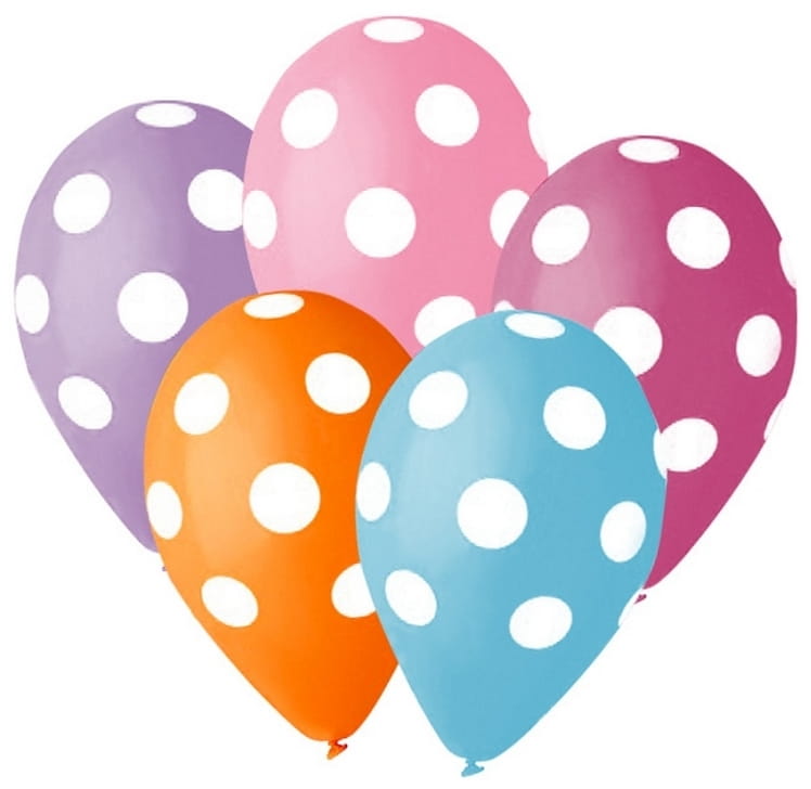 Balony kolorowe Grochy 30 cm 5 sztuk, GoDan