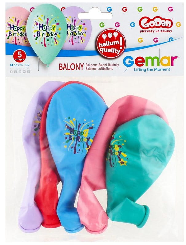 Balony kolorowe Happy Birthday 5 sztuk 33 cm, GoDan