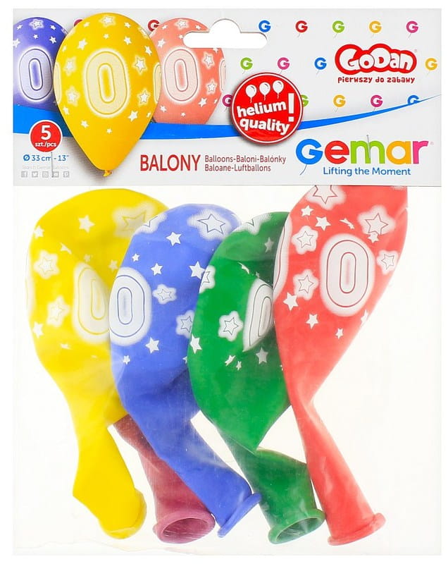 Balony kolorowe cyfra 0 - 5 sztuk 33 cm, GoDan