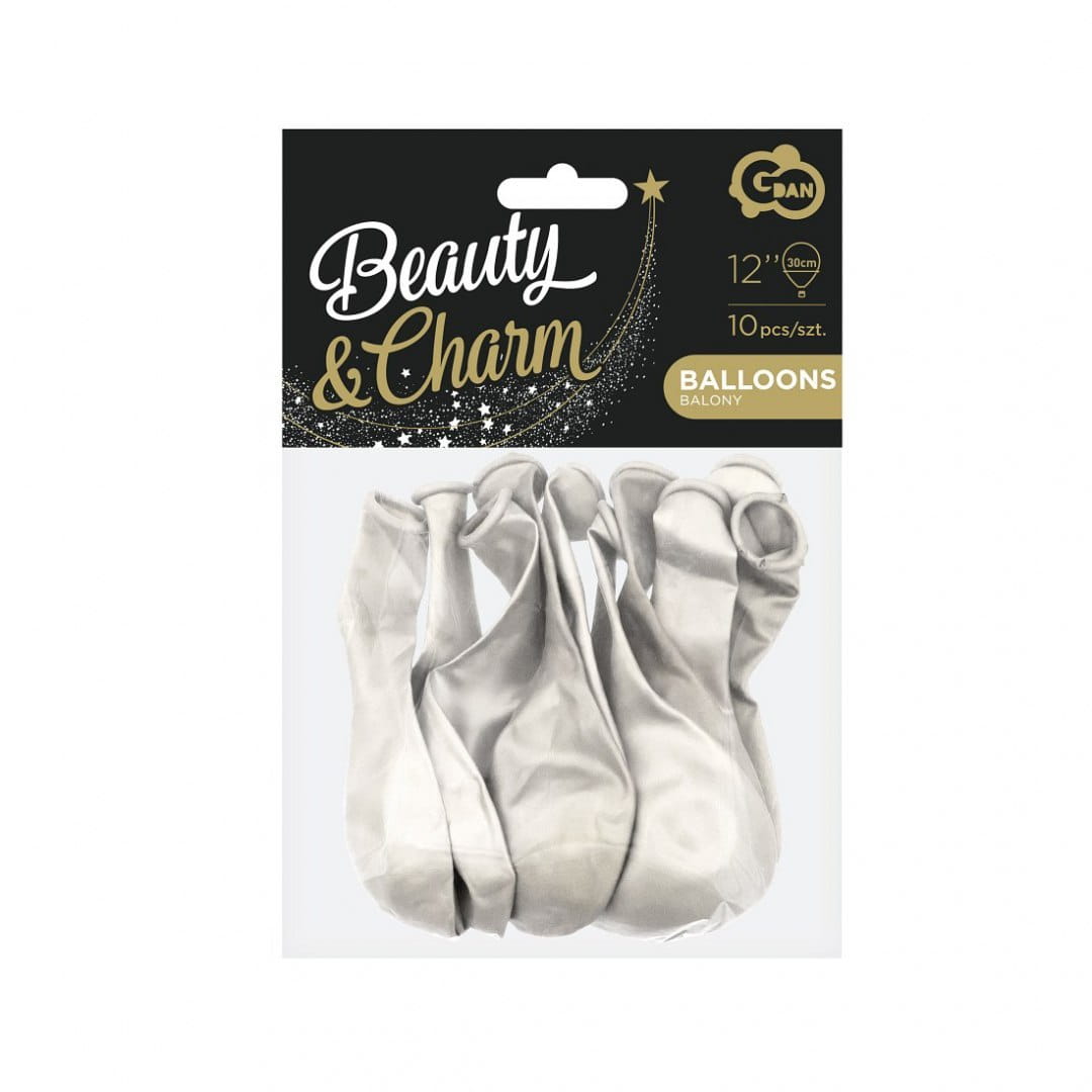 Balony kolorowe metaliczne białe 10 sztuk Beauty&Charm Godan