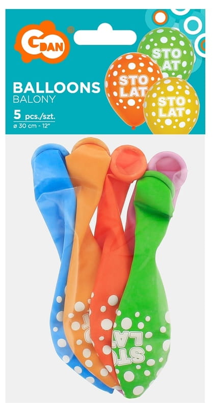 Balony kolorowe z nadrukiem Sto Lat 5 sztuk Godan