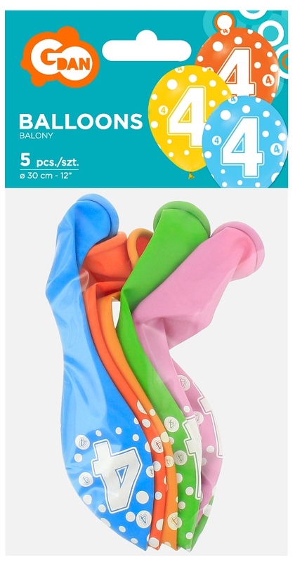 Balony z cyframi: 4, 12" op. 5 szt., GoDan