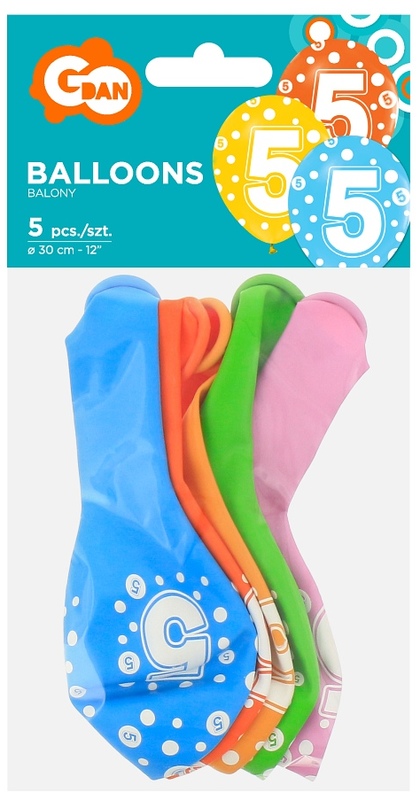 Balony z cyframi: 5, 12" op. 5 szt., GoDan