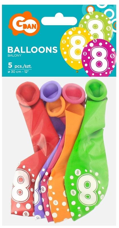 Balony z cyframi: 8, 12" op. 5 szt., GoDan