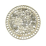 Okrągła baza z ażurowym motywem kwiatów, liści i gałązek do samodzielnego wykonania koszyka ze sznurków bawełnianych. Idealna podstawa do ręcznie robionych koszyków, torebek, pojemników, osłonek na doniczki oraz innych akcesoriów i dekoracji ze sznurka. Pozwala łatwo uzyskać pożądany kształt i zwiększa stabilność pracy. Baza jest obustronnie szlifowana, dzięki czemu nie ma przypaleń i prezentuje się bardzo estetycznie. Średnica: 20 cm Grubość: 0,3 cm Wielkość otworów: 1 cm Odległość między otworami: 0,3 cm Materiał: sklejka brzozowa