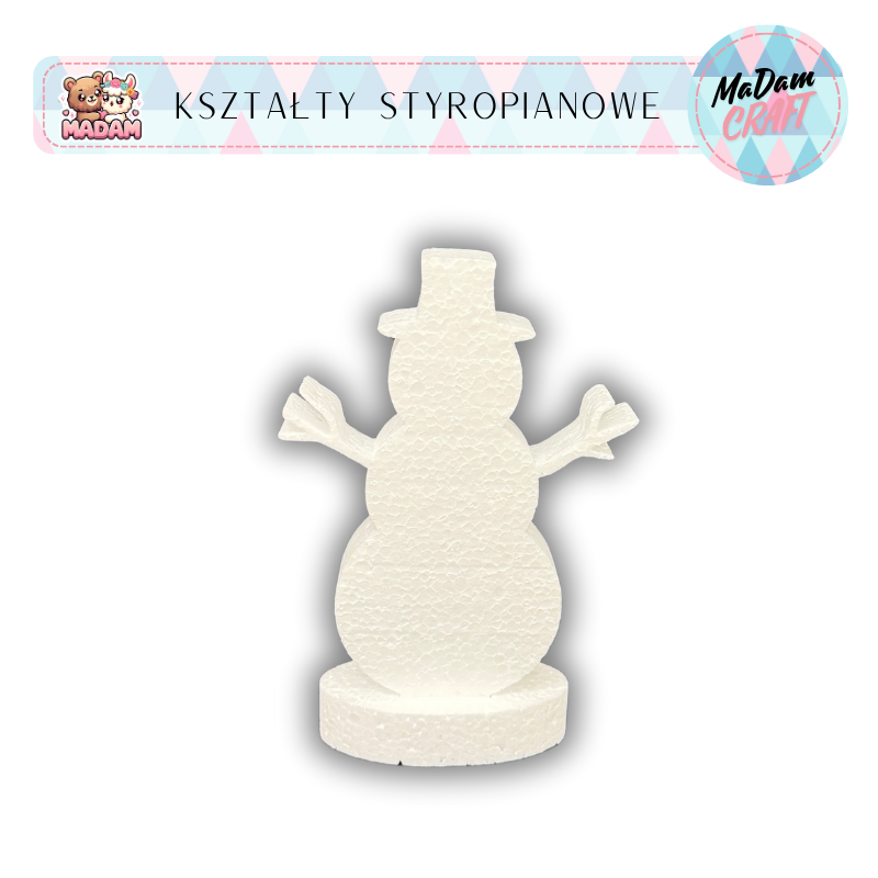 Baza styropianowa Bałwan z podstawką 10 cm Boże Narodzenie wzór4, MaDam Creative – stwórz wyjątkowe ozdoby świąteczne DIY