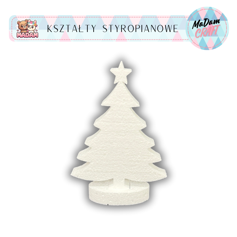 Baza styropianowa Choinka z podstawką 40 cm wzór 3, MaDam Creative – stwórz wyjątkowe ozdoby świąteczne DIY