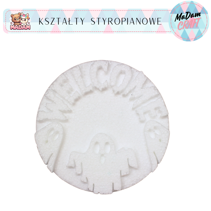 Baza styropianowa duchy welcome koło 20x2 cm Halloween, MaDam Creative