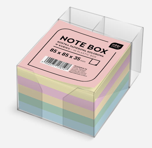 Bloczek kartek kolorowych w pojemniku 85x85x35mm, Interdruk
