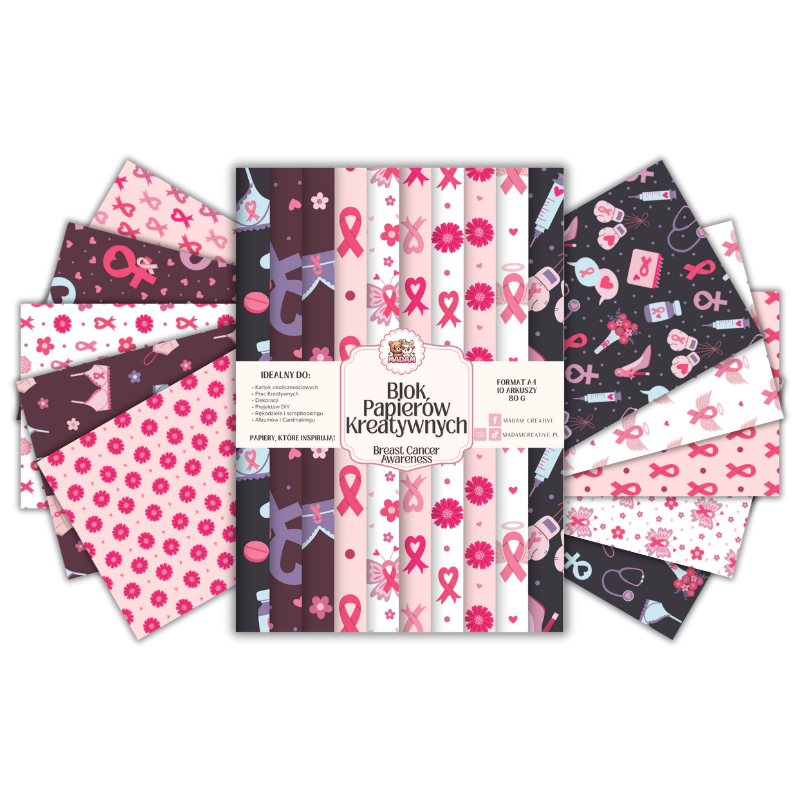 Blok Papierów Kreatywnych Breast Cancer Awareness - do Scrapbookingu i Journalingu MaDam Creative