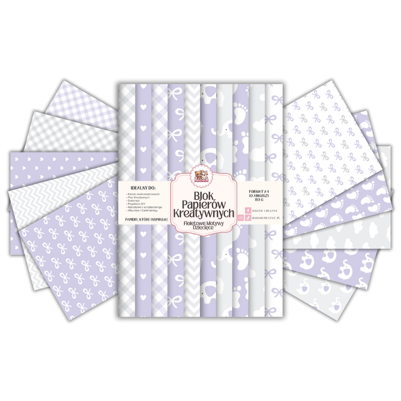 Blok Papierów Kreatywnych Fioletowe Motywy Dziecięce - do Scrapbookingu i Journalingu MaDam Creative