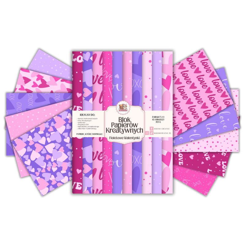 Blok Papierów Kreatywnych Fioletowe Walentynki - do Scrapbookingu i Journalingu MaDam Creative