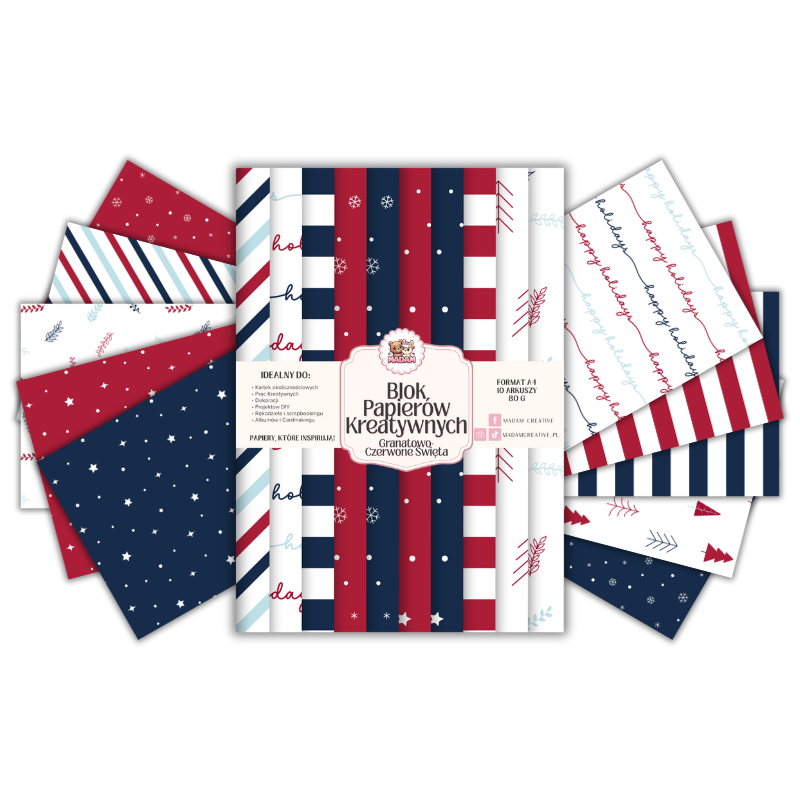 Blok Papierów Kreatywnych Granatowo-Jagodowe Święta - do Scrapbookingu i Journalingu MaDam Creative
