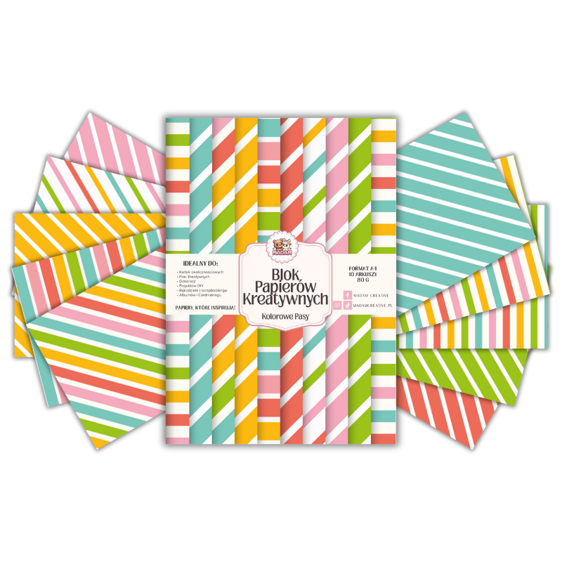 Blok Papierów Kreatywnych Kolorowe Pasy - do Scrapbookingu i Journalingu MaDam Creative (2)