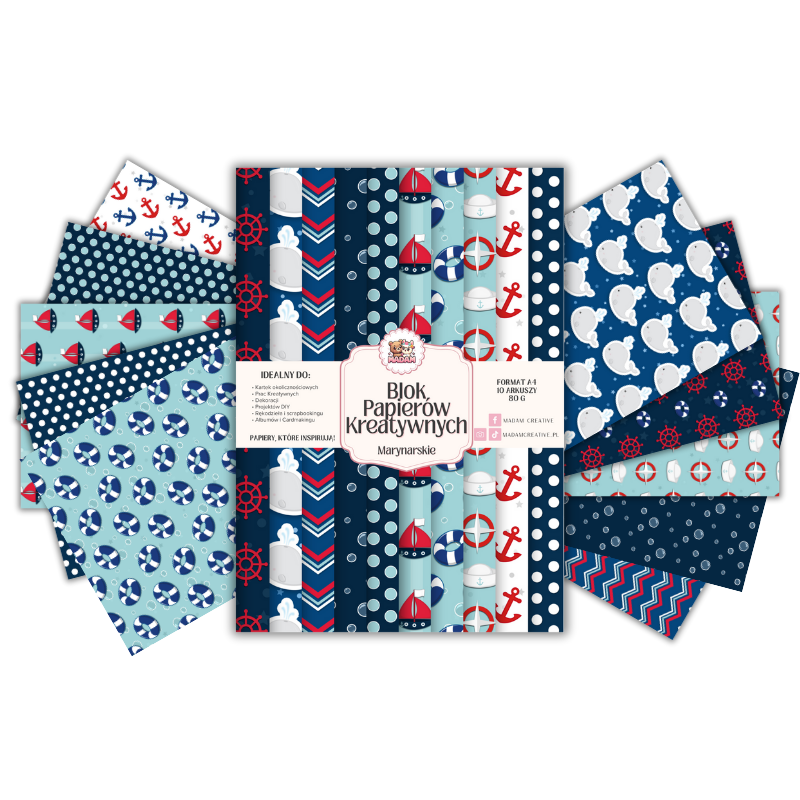 Blok Papierów Kreatywnych Marynarskie - do Scrapbookingu i Journalingu MaDam Creative