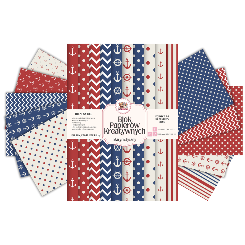 Blok Papierów Kreatywnych Marynistyczny - do Scrapbookingu i Journalingu MaDam Creative0