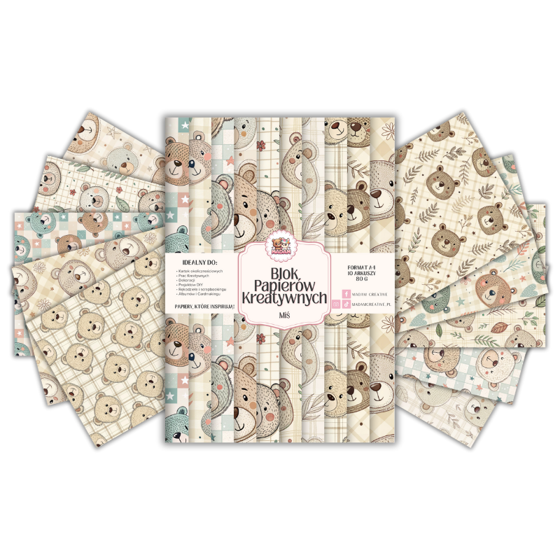Blok Papierów Kreatywnych Miś - do Scrapbookingu i Journalingu MaDam Creative