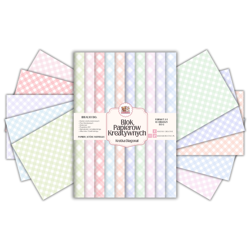 Blok Papierów Kreatywnych Pastelowa Kratka Diagonal - do Scrapbookingu i Journalingu MaDam Creative
