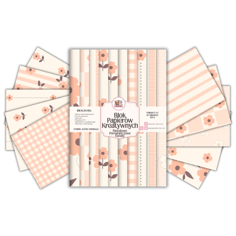 Blok Papierów Kreatywnych Pastelowe Pomarańczowe Kwiaty - do Scrapbookingu i Journalingu MaDam Creative
