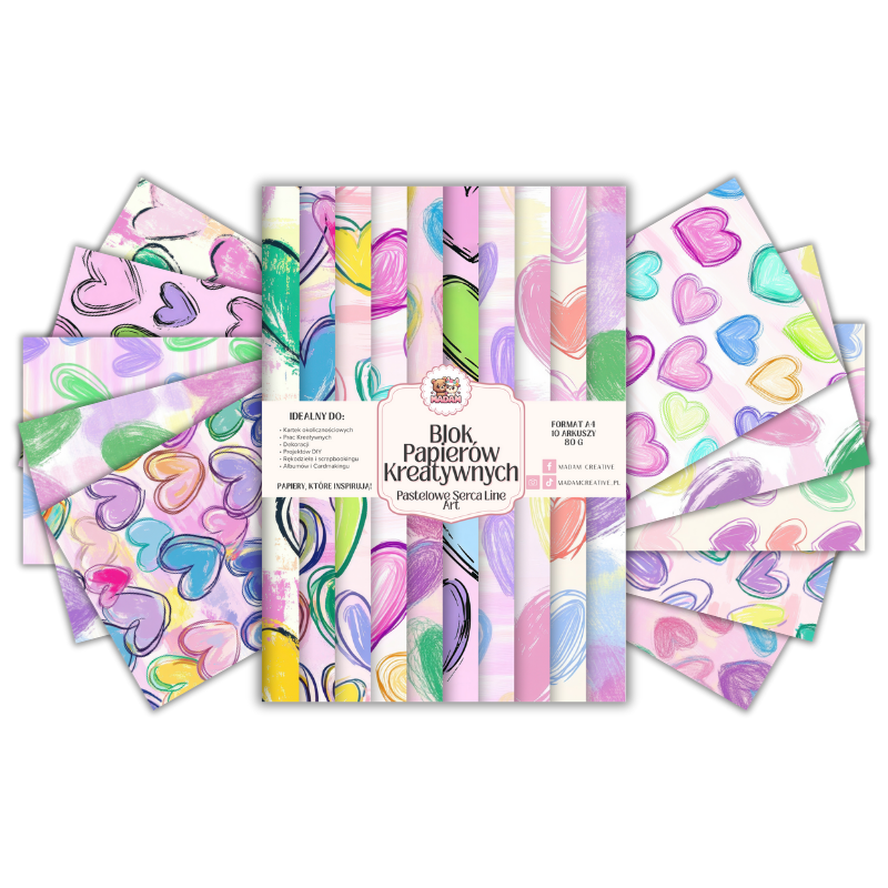 Blok Papierów Kreatywnych Pastelowe Serca Line Art - do Scrapbookingu i Journalingu MaDam Creative