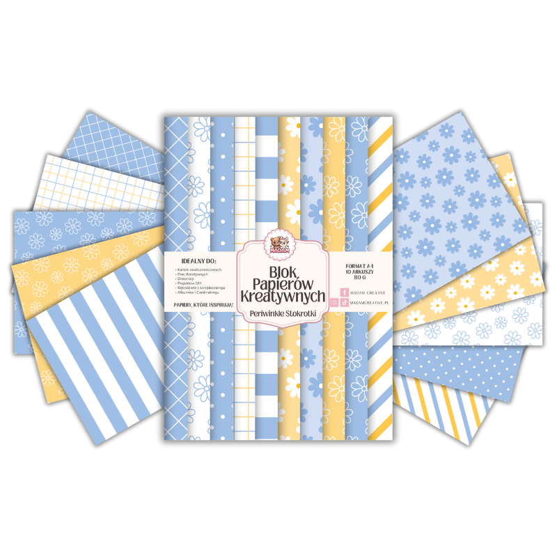Blok Papierów Kreatywnych Perywinkle Stokrotki - do Scrapbookingu i Journalingu MaDam Creative (10)