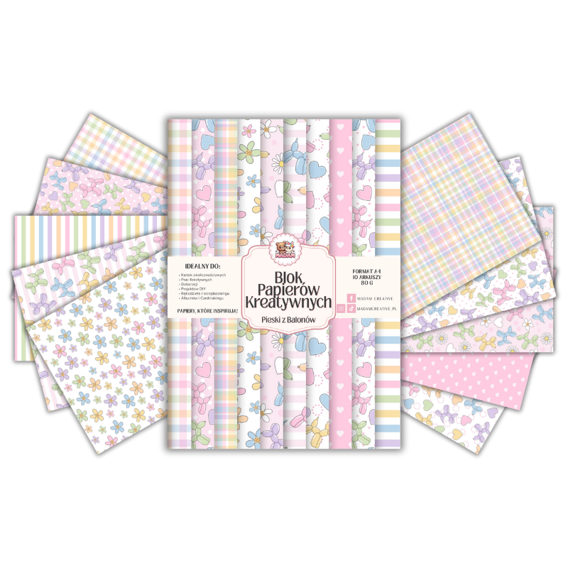 Blok Papierów Kreatywnych Pieski z Balonów - do Scrapbookingu i Journalingu MaDam Creative