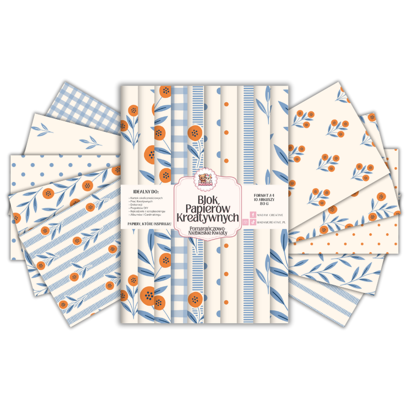 Blok Papierów Kreatywnych Pomarańczowo-Niebieskie Kwiaty - do Scrapbookingu i Journalingu MaDam Creative
