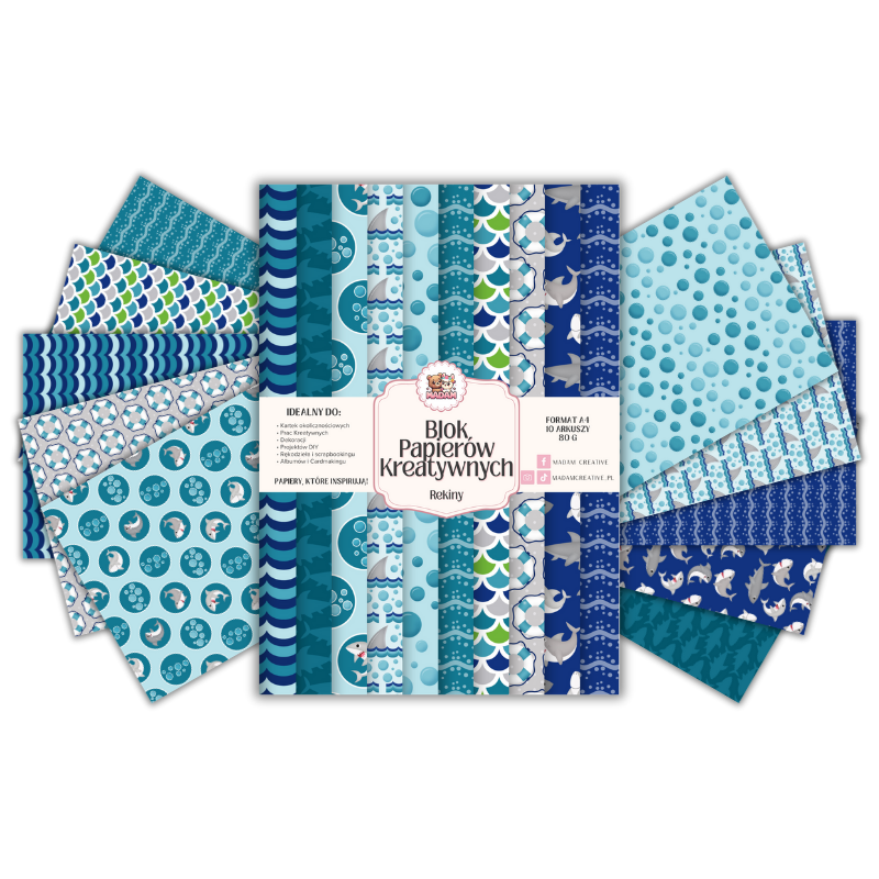 Blok Papierów Kreatywnych Rekiny - do Scrapbookingu i Journalingu MaDam Creative