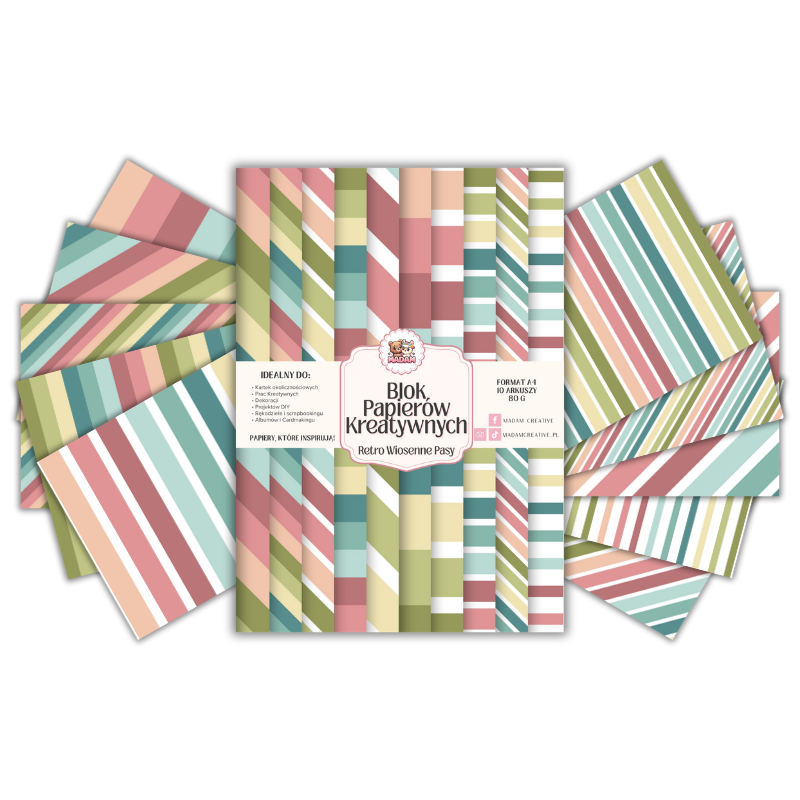 Blok Papierów Kreatywnych Retro Wiosenne Pasy - do Scrapbookingu i Journalingu MaDam Creative