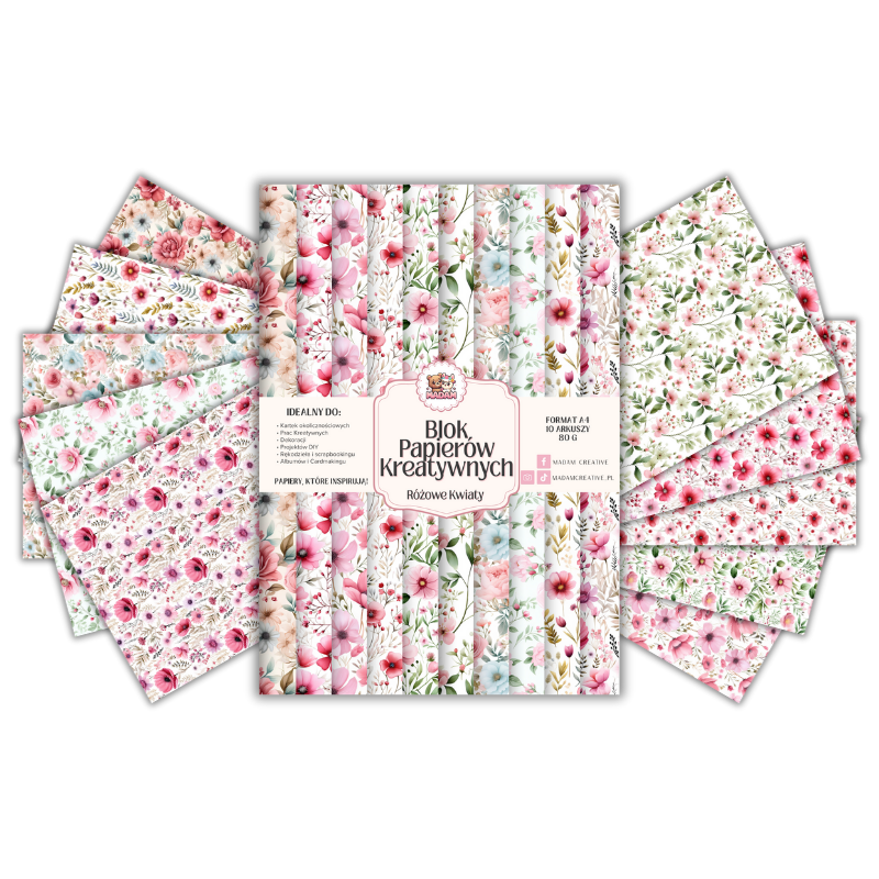 Blok Papierów Kreatywnych Różowe Kwiaty - do Scrapbookingu i Journalingu MaDam Creative