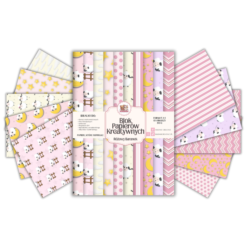 Blok Papierów Kreatywnych Różowy Baranek - do Scrapbookingu i Journalingu MaDam Creative