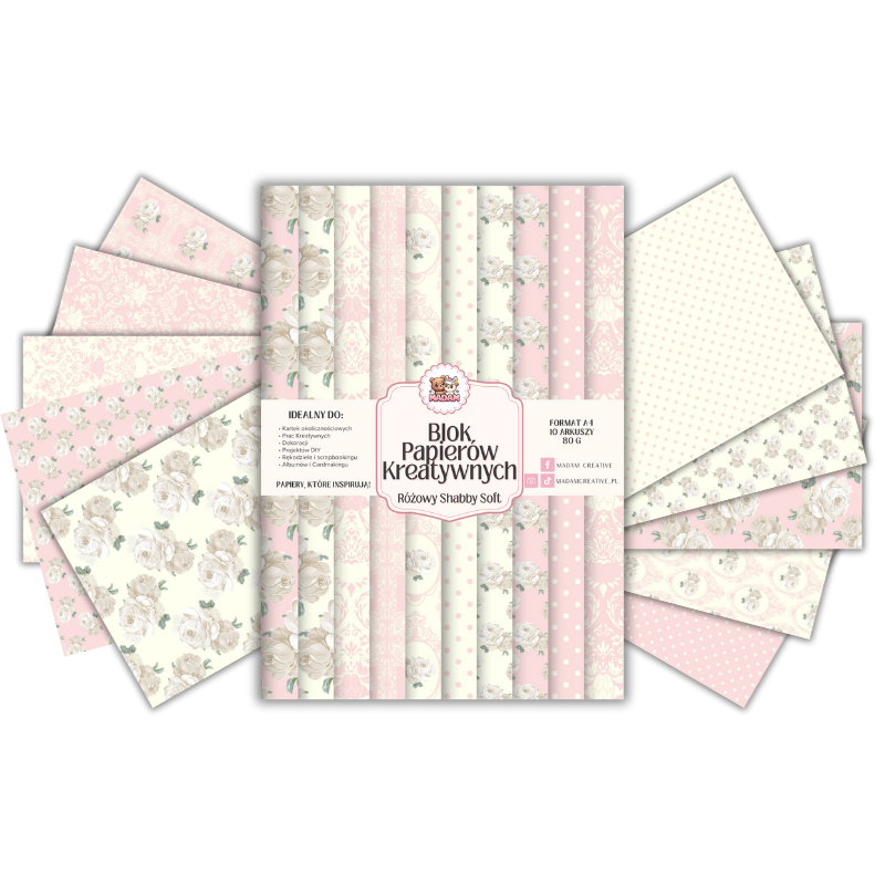 Blok Papierów Kreatywnych Różowy Shabby Soft - do Scrapbookingu i Journalingu MaDam Creative