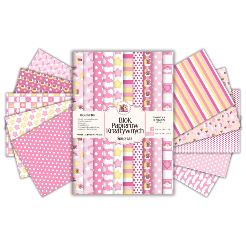 Blok Papierów Kreatywnych Śpiący Miś - do Scrapbookingu i Journalingu MaDam Creative