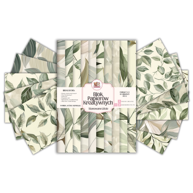 Blok Papierów Kreatywnych Stonowane Liście - do Scrapbookingu i Journalingu MaDam Creative