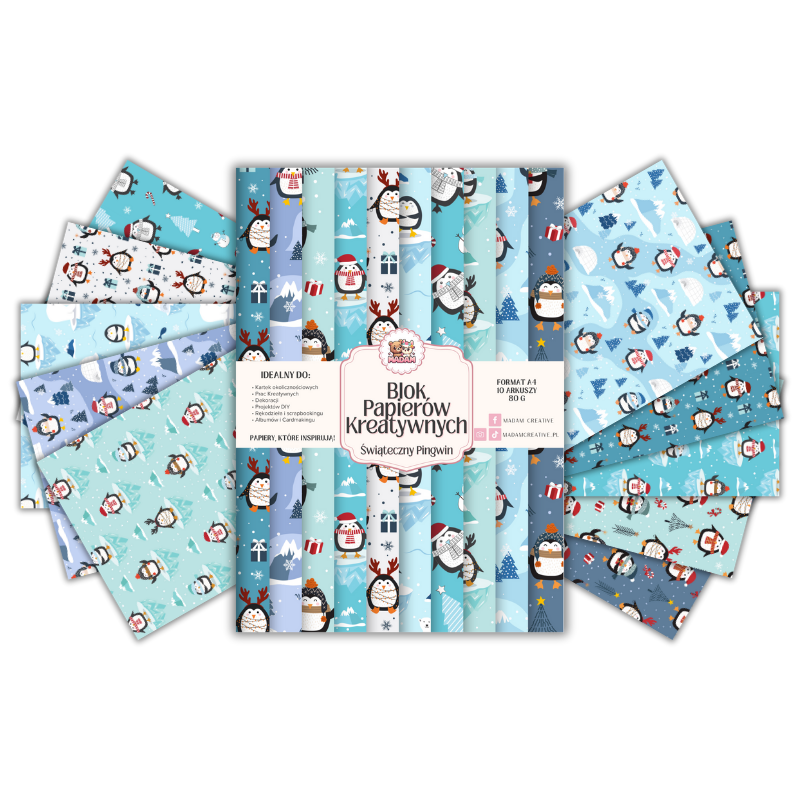 Blok Papierów Kreatywnych Świąteczny Pingwin - do Scrapbookingu i Journalingu MaDam Creative