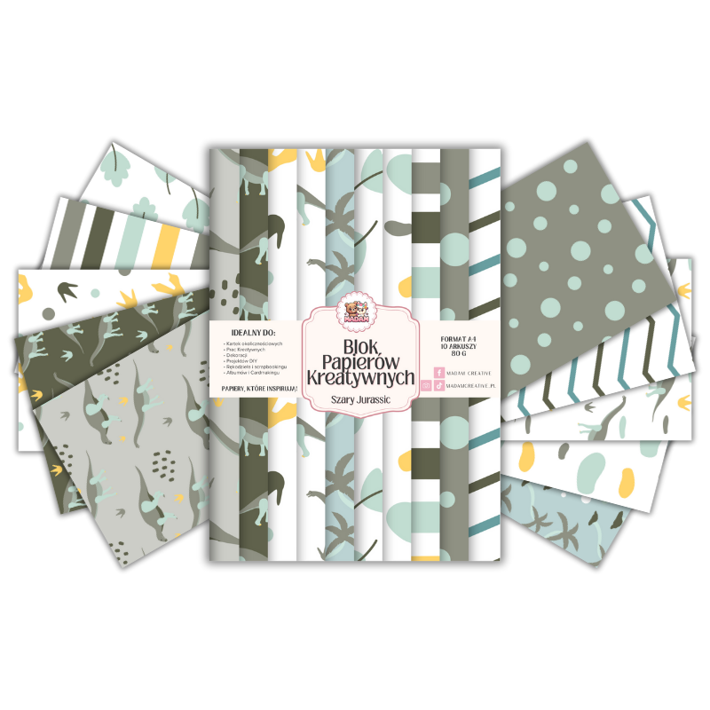 Blok Papierów Kreatywnych Szary Jurassic - do Scrapbookingu i Journalingu MaDam Creative