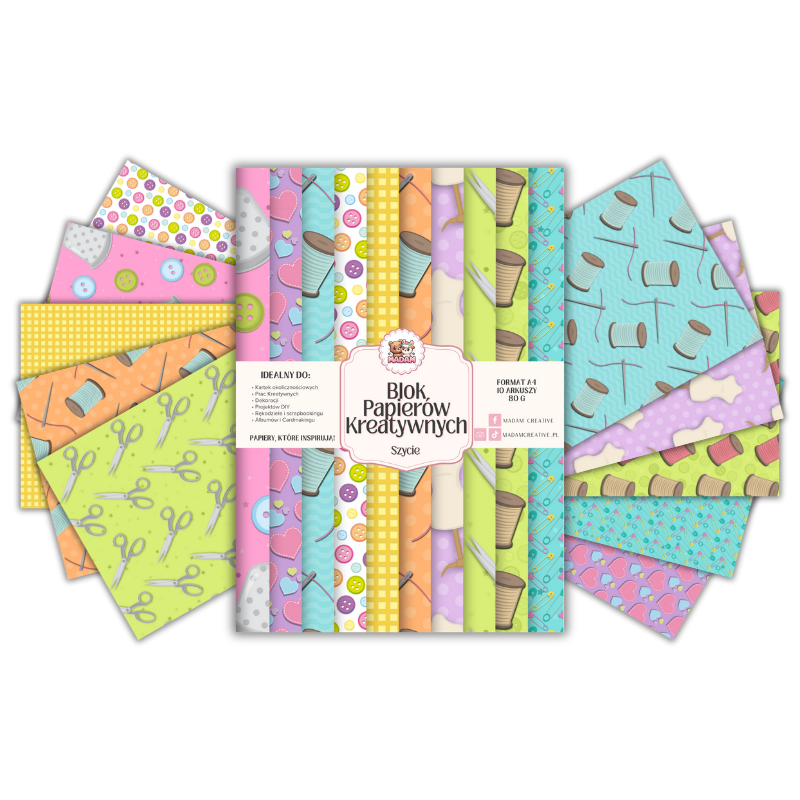Blok Papierów Kreatywnych Szycie - do Scrapbookingu i Journalingu MaDam Creative