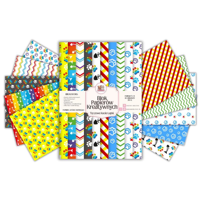 Blok Papierów Kreatywnych Tęczowe Kocie Łapki - do Scrapbookingu i Journalingu MaDam Creative