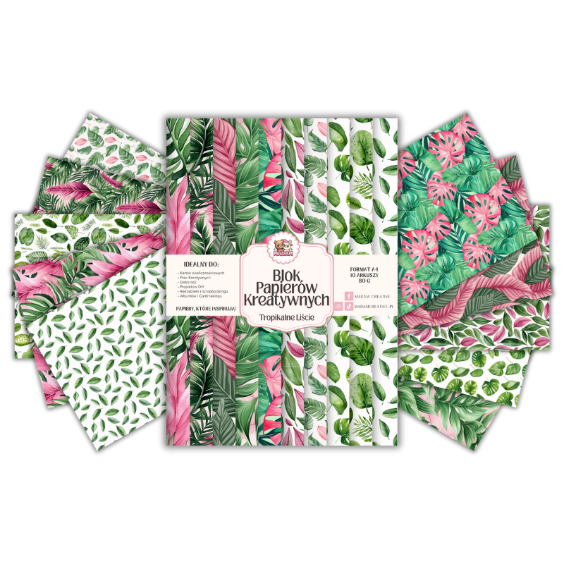 Blok Papierów Kreatywnych Tropikalne Liście - do Scrapbookingu i Journalingu MaDam Creative