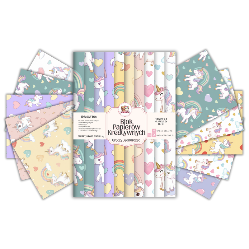 Blok Papierów Kreatywnych Uroczy Jednorożec - do Scrapbookingu i Journalingu MaDam Creative