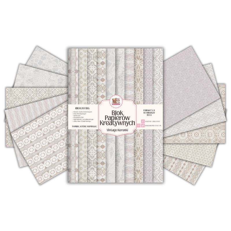 Blok Papierów Kreatywnych Vintage Koronki - do Scrapbookingu i Journalingu MaDam Creative
