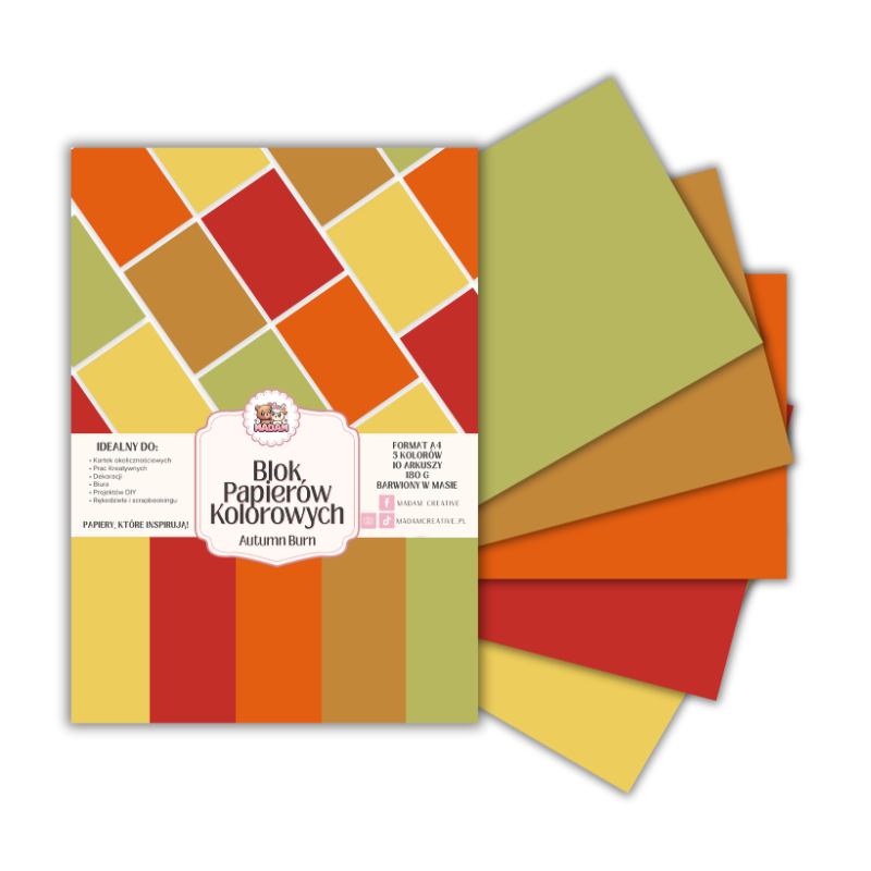 Blok papierów kolorowych A4 180g 10 arkuszy Autumn Burn, MaDam Creative