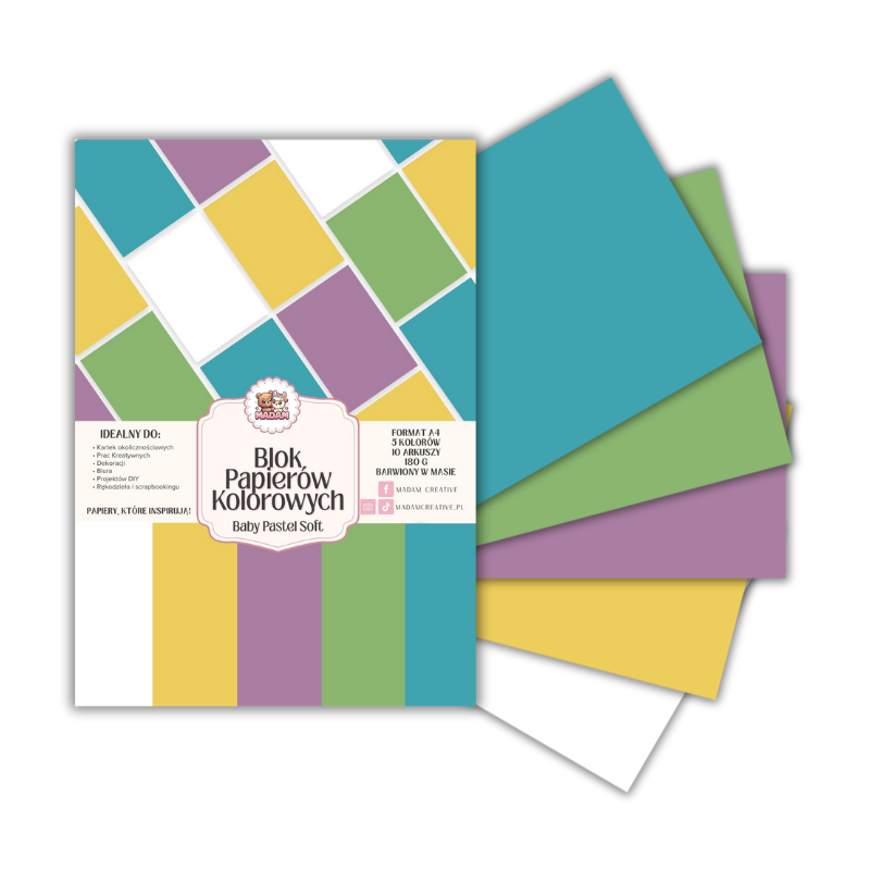 Blok papierów kolorowych A4 180g 10 arkuszy Baby Pastel Soft, MaDam Creative