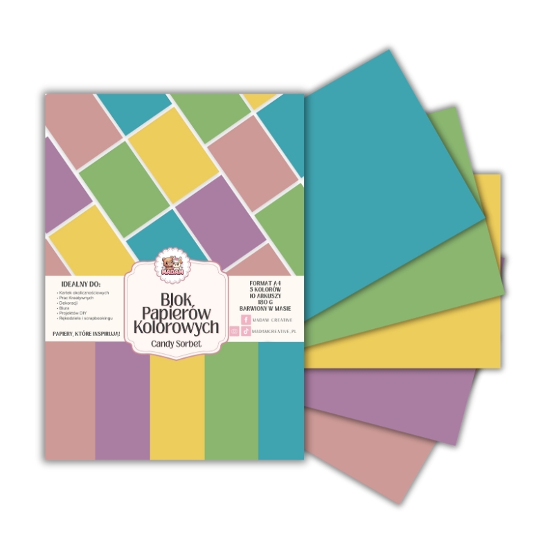 Blok papierów kolorowych A4 180g 10 arkuszy Candy Sorbet, MaDam Creative