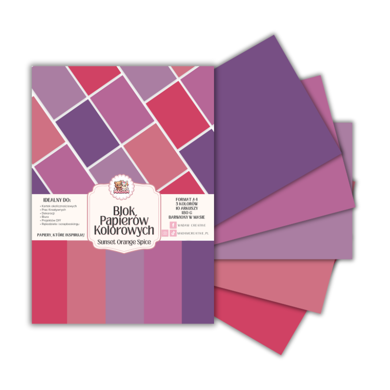 Zestaw składa się z 10 arkuszy w 5 kolorach – każda paleta kolorystyczna została opracowana tak, aby była spójna, harmonijna i idealnie pasowała do tematyki wybranego zestawu.